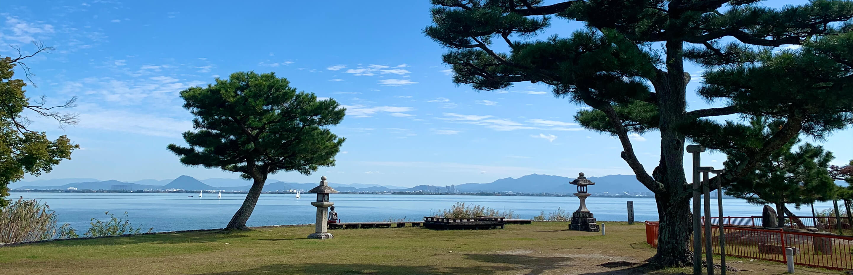 唐崎神社は日吉大社に縁の深い神社であり、琵琶湖畔に面した境内は、対岸に近江富士を望むことができ、広い空と湖、巨大な霊松を仰ぎ見ることができる素晴らしい場所です。